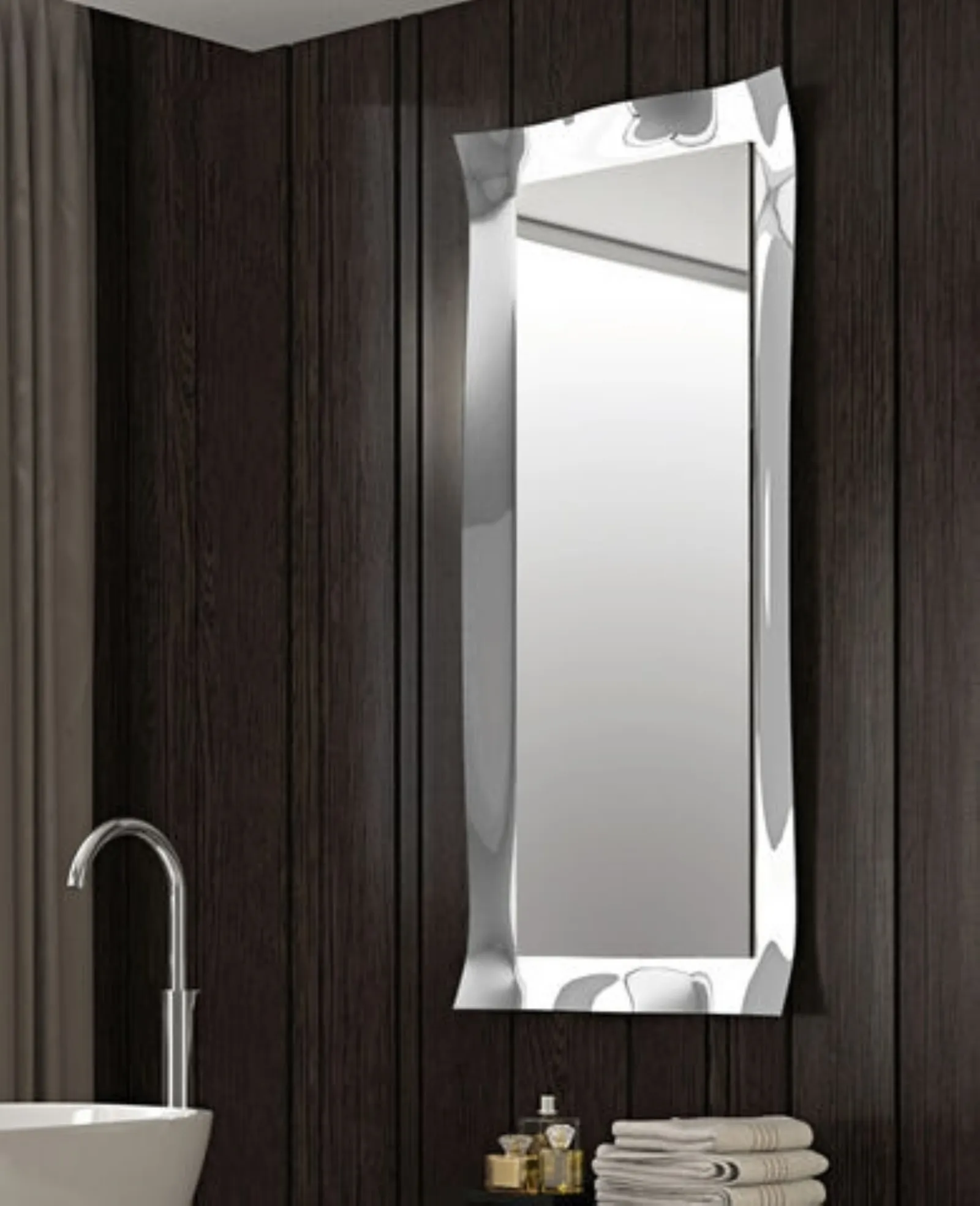 Assai versatili e multifunzionali, i Complementi moderni in vetro svolgono funzioni disparate: ultimano le qualità pratiche e il valore estetico del locale. Specchio Viva di Riflessi in vetro: aggiungerà carattere e charme a un interno arredato con mobili ed elementi accessori dai richiami moderni. Le composizioni di grande fascino del marchio Riflessi arredano l'habitat con i loro colori e gusto, ricreando particolari atmosfere arredative. Complementi e specchi completano l'arredo di casa, occupando lo spazio in modo utile e rendendolo assai funzionale e di grande valore estetico. Nel nostro showroom potrai vedere dal vivo l'eccellenza dei modelli di specchi moderni in vetro dell'azienda, proprio come questa soluzione in foto.