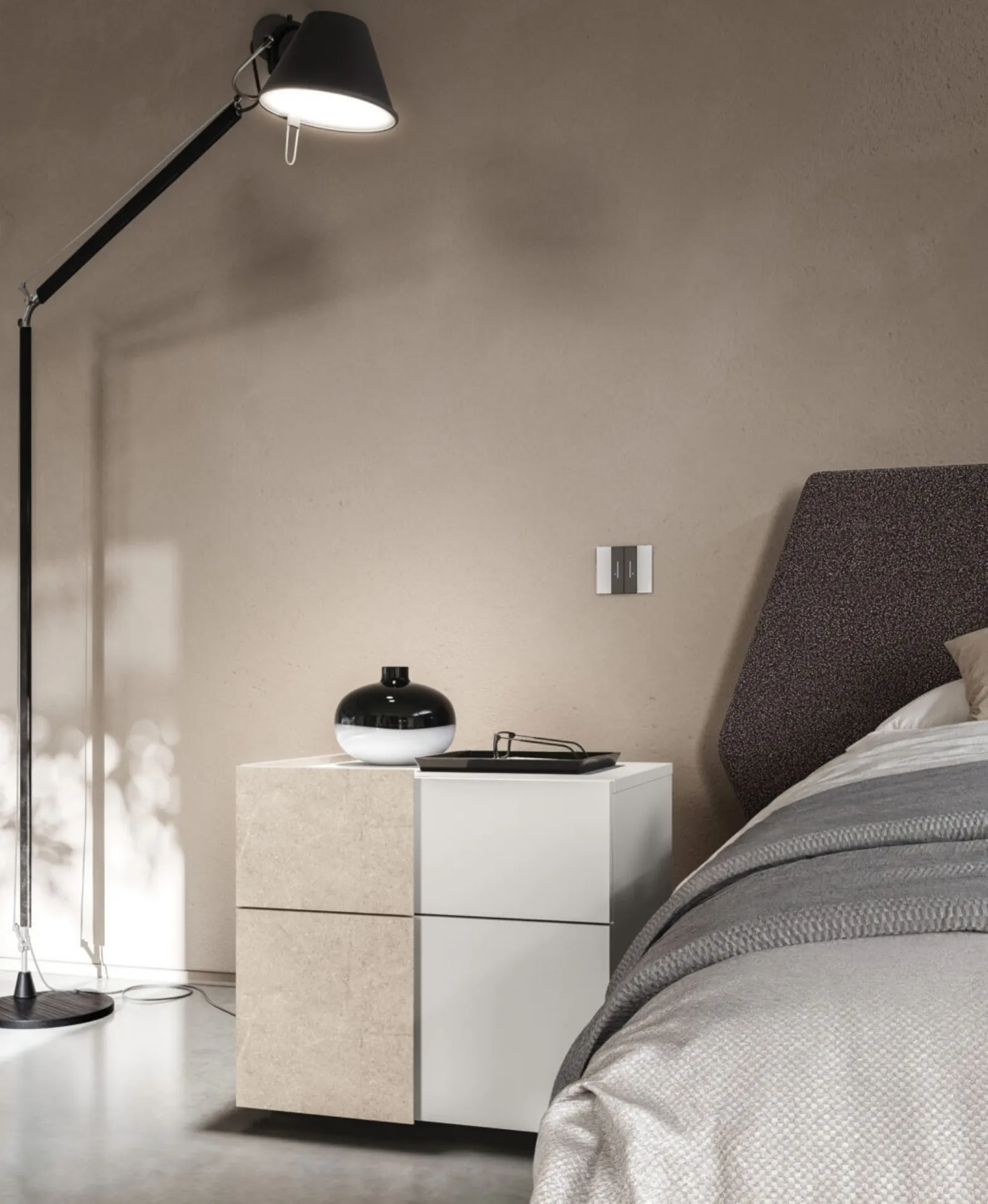 La zona del riposo contiene anche i Comò e Comodini: mobili per contenere d'uso quotidiano che lasciano la possibilità di sistemare piccole cose e contare su piani per appoggiare per vari utilizzi. Comodino Double di Orme: contattaci e scopri di più sulle nostre composizioni e arreda la camera come l'hai sempre immaginata. Ottimizza i tuoi locali scegliendo composizioni di arredi abbinati oppure crea originali abbinamenti di stile e cromie per merito del catalogo di mobili e oggetti accessori per la zona del riposo che proponiamo, come il modello in melaminico presente in foto, anche realizzabili su misura.