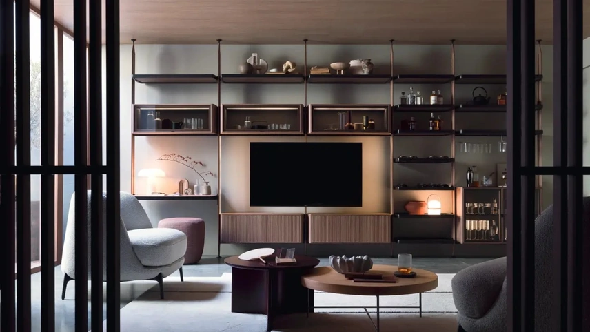 Novamobili produce originali modelli di mobili soggiorno, diversi per stile e forme, finiture e accessori: scopri nel nostro punto vendita l'Arredamento Casa dei migliori produttori. I mobili soggiorno in legno dalle linee moderne come il modello nella fotografia sono veramente poliedrici e capaci di allestire il soggiorno ottimizzando ogni angolo. Dato che il soggiorno deve essere uno spazio agevole e di grande valore estetico, sono necessari alcuni mobili belli e funzionali come le Pareti Attrezzate. La Parete Attrezzata Dedalo di Novamobili nella fotografia è una delle più originali soluzioni d’arredo in commercio: l'alta componibilità e le diverse opportunità di progettazione la rendono pratica e sofisticata.