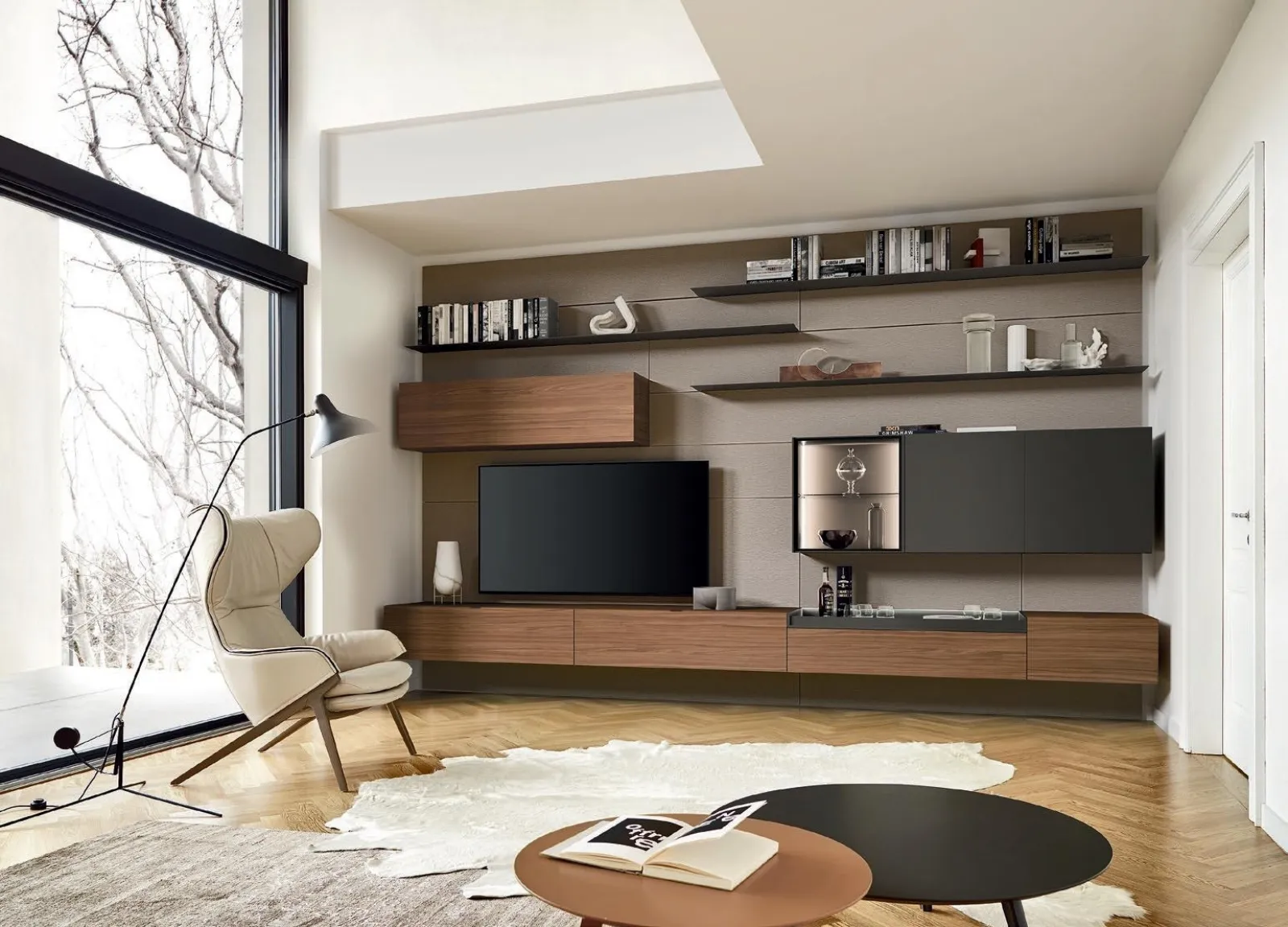 Anche in un soggiorno abbastanza piccolo, questo tipo di arredo riesce a organizzare al meglio gli spazi ottimizzando ogni angolo e garantendo componibilità su misura tipica delle soluzioni moderne. Questo modello rappresenta tutta la qualità che il marchio garantisce grazie a pluriennale competenza e grande passione nel campo dell'arredo e del design. Se cerchi arredi salvaspazio e realizzabili su misura, contattaci e scopri di più sull'Arredamento Casa dei migliori brand. La Parete Attrezzata Lampo 186 di Sangiacomo nella fotografia, realizzata in legno, risolve le più personali esigenze abitative di stile e spazio senza rinunciare alla ricerca estetica.