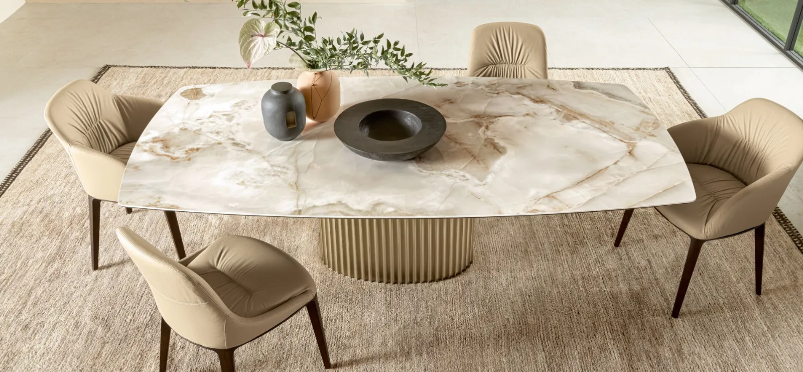 Uno dei nostri modelli di Tavoli e Consolle fissi sarà capace di completare il tuo concept d'arredo con funzionalità e stile. I Tavoli e Consolle sono tra i mobili e oggetti accessori fondamentali dell'ambiente giorno e del locale cucina, ambienti dedicati all'ospitalità dove si sta in compagnia con familiari e amici. L'esclusivo brand Riflessi rende disponibili una ricca gamma di Tavoli e Consolle da pranzo fissi, tra cui anche quelli ideali per completare ottimamente locali design. Un tavolo di tutto rispetto deve essere in materiali durevoli, cosicché sia resistente e preservi nel tempo il valore estetico che lo connotano. Tavolo Enea di Riflessi: nel nostro showroom ti attende una gamma quasi infinita di composizioni di grande design.